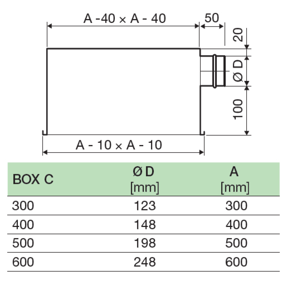 Připojovací boxy pro vířivé anemostaty VA z ocelového galvanicky pozinkovaného plechu.
