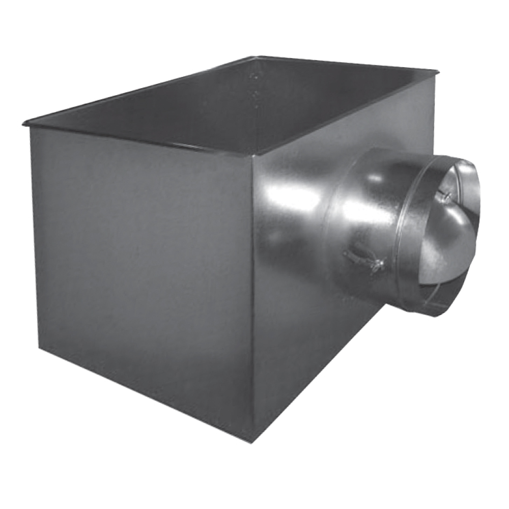 Připojovací boxy pro vířivé anemostaty VA z ocelového galvanicky pozinkovaného plechu.