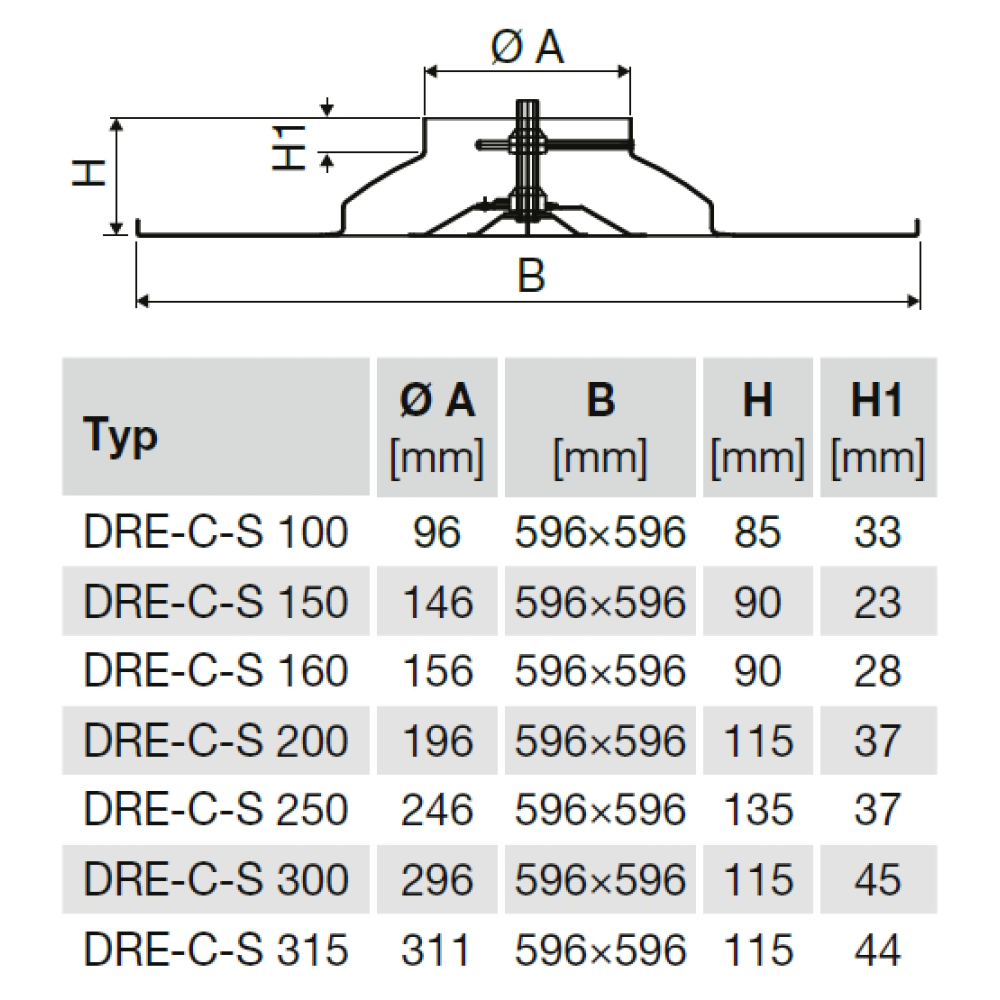 DRE-C-S 250 kruhový anemostat s nastavitelným kuželem