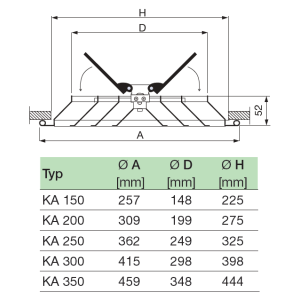 Hliníkové kruhové anemostaty bílé barvy s integrovanou regulační klapkou.