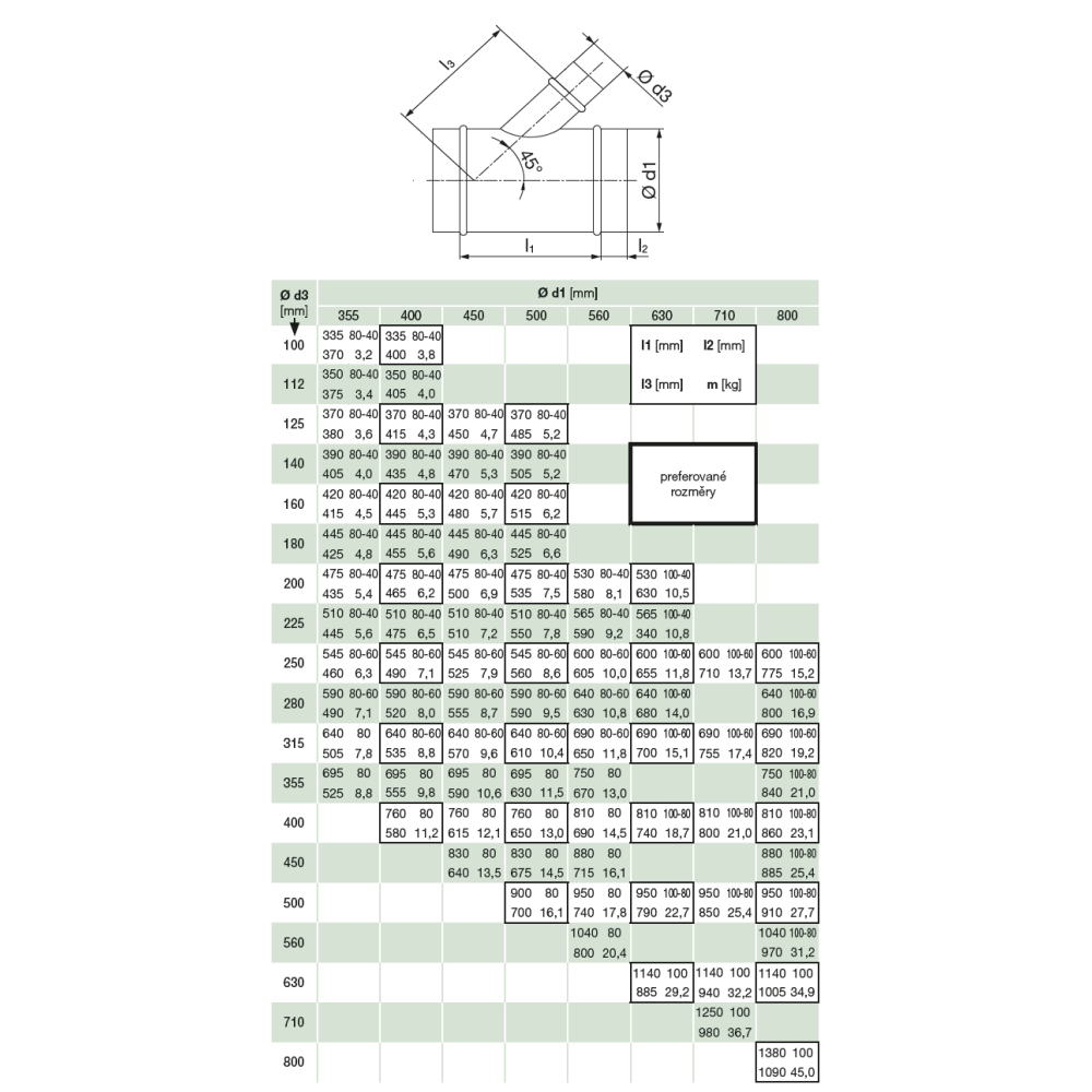 Odbočky jednostranné 45° s těsněním k napojení odbočení z trasy.