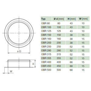 OBRG 200 nástavec na hranaté potrubí s těsněním