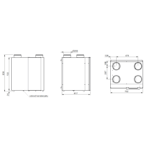 je vyrobena z vysoce kvalitního a odolného expandovaného polystyrenu (EPS) s vnějším pláštěm z lakovaného ocelového plechu, což zajišťuje nízké tepelné ztráty jednotky. Na spodní straně je z jednotky vyveden odvod kondenzátu. Na skříni jsou umístěna hrdla o Ø 200 mm. Jednotka má integrovaný bypass.